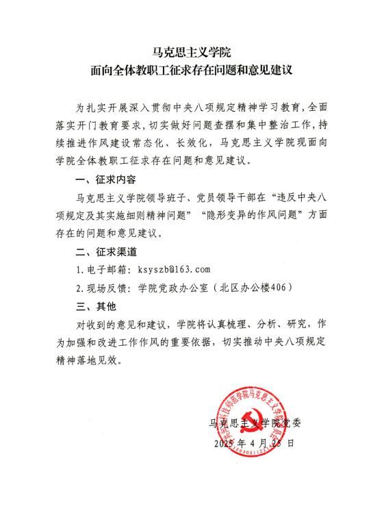 WilliamHill中文官方网站面向全体教职工征求存在问题和意见建议