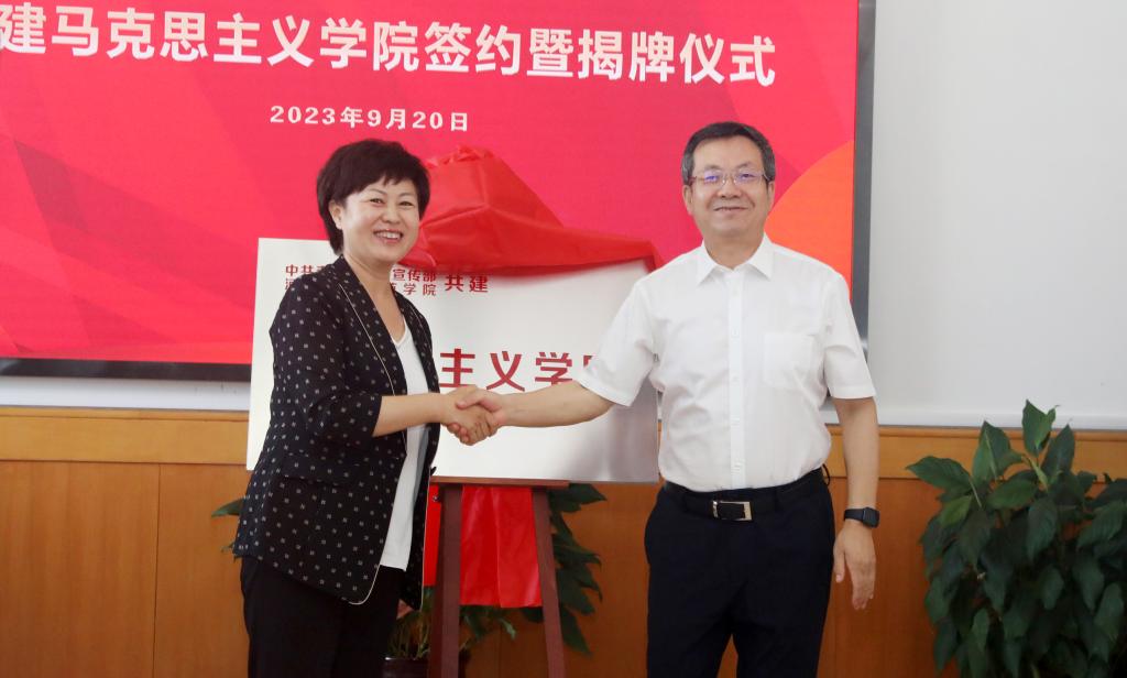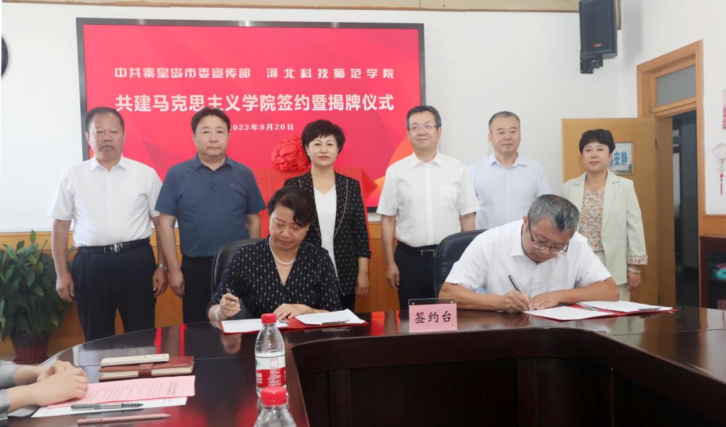 为深入贯彻习近平总书记在学校思想政治理论课教师座谈会上的重要讲话精神,贯彻中央、省委关于思政课改革创新重要意见,落实秦皇岛市委相关部署,充分发挥秦皇岛市委宣传部政治领导优势及地方资源优势和WilliamHill官网教育资源优势,提升WilliamHill官网WilliamHill中文官方网站建设水平,推进秦皇岛市学校思想政治理论课改革创新,更好服务秦皇岛地方经济社会发展,2023年9月20日上午,WilliamHill官网与中共秦皇岛市委宣传部共建WilliamHill中文官方网站签约暨揭牌仪式在逸夫教学楼1116会议室隆重举行。中共秦皇岛市委常委、宣传部长许红琳,市委宣传部常务副部长、一级调研员郑新,市委办公室、市委党史研究室、市委市直机关工委、市委教育工委、市农业农村局、市旅游文广局、市国资委、市社科联、市日报社、市广播电视台等单位分管领导出席了仪式。WilliamHill官网党委书记朱勇,党委副书记、校长郭旭涛,党委常委、副校长蒋爱林以及相关职能部门负责人、WilliamHill中文官方网站班子成员、教师代表参加了仪式。仪式由WilliamHill官网郭旭涛主持。